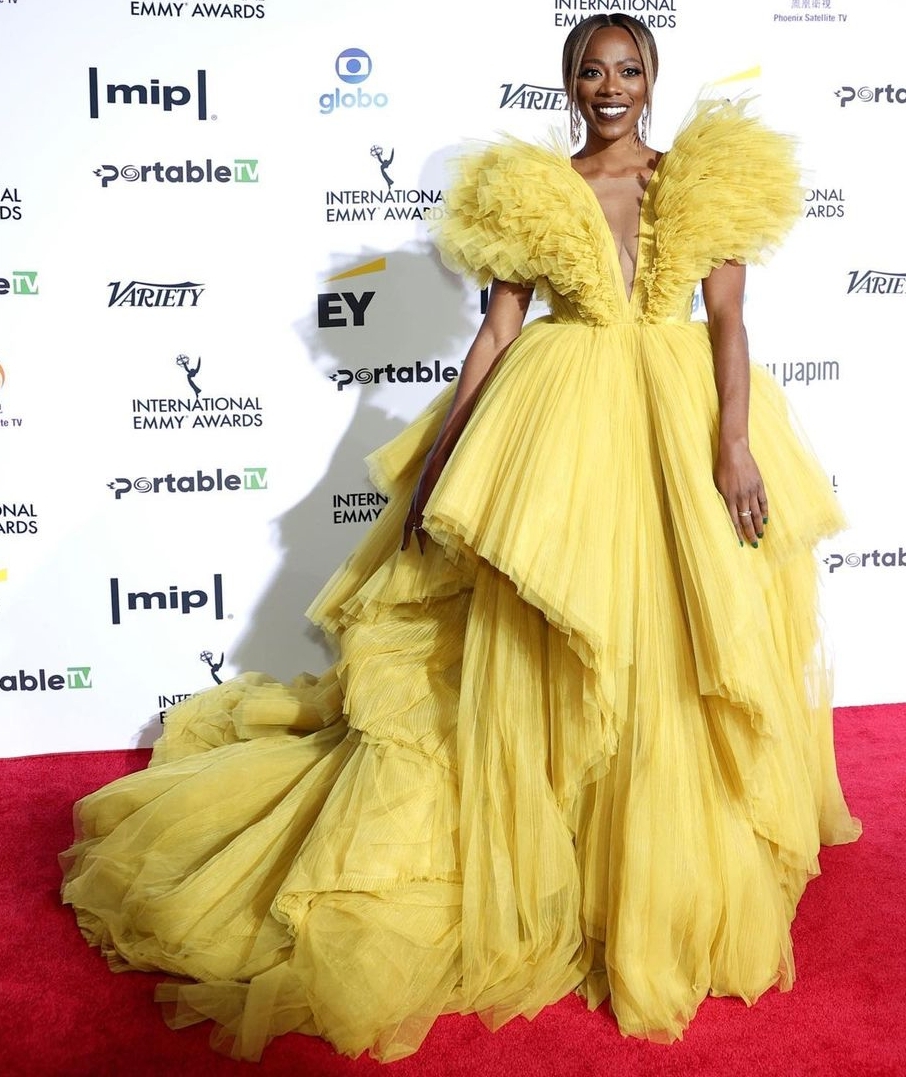 Yvonne Orji nổi bật trên thảm đỏ với đầm Haute Couture quá khổ của Nicole + Felicia. Ảnh: Instagram Yvonne Orji