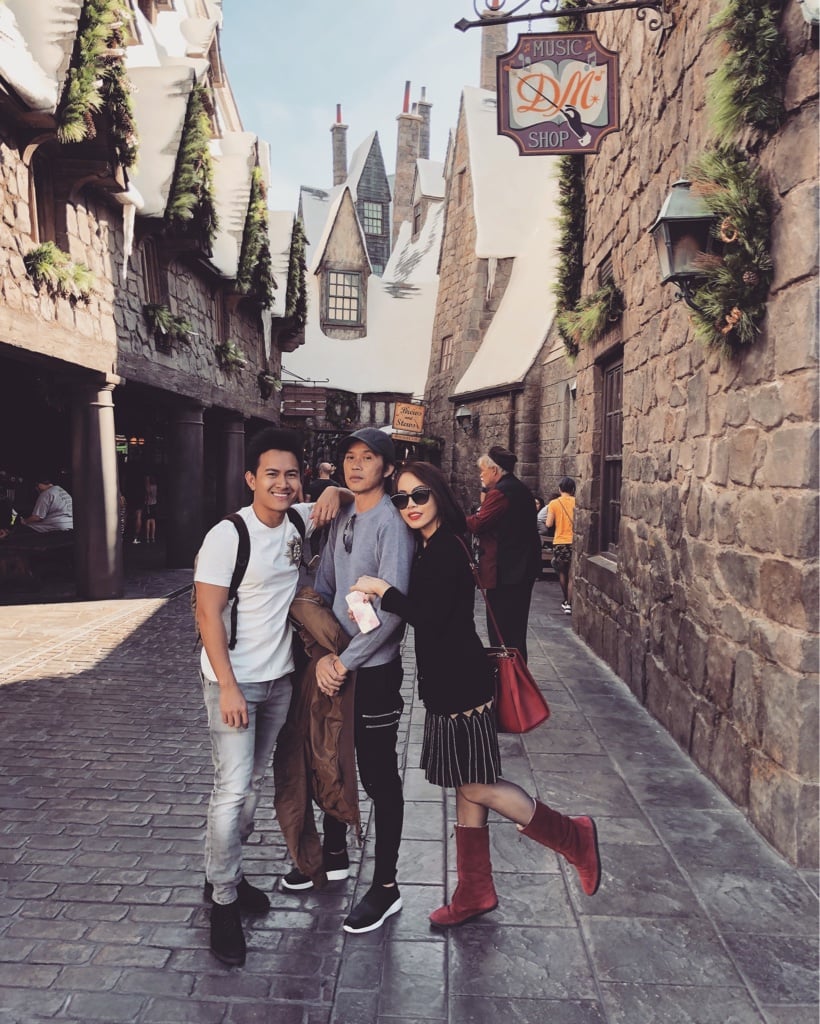 Hoài Linh và con trai Thành Vinh trong chuyến dạo chơi phim trường Universal