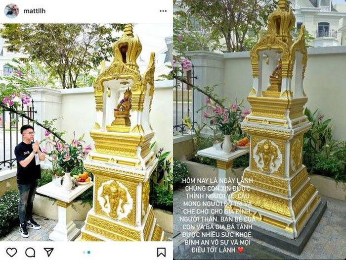 Mới đây, cặp đôi Hương Giang - Matt Liu ngầm khẳng định sống chung. Trên Instagram Matt Liu đăng tải ảnh thỉnh tượng về thờ tại nhà mới. Phía Hương Giang chia sẻ lại hình ảnh bức tượng này đồng thời dùng từ "chúng con", cho thấy cô và bạn trai đang sống chung. Ảnh: Phụ nữ Việt Nam