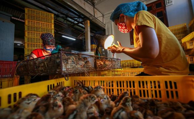 Vào đợt cao điểm, thợ phân biệt giới tính gà có thể chọn được tới 10.000 con gà trống/mái khác nhau trong ngày với mức lương 200-300 đồng/con.