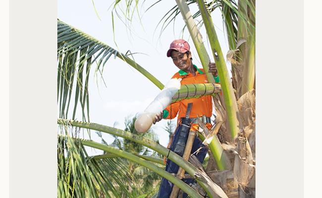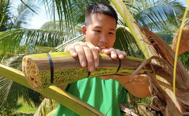 Tuy nhiên, công việc này khá vất vả,không phải ai cũng làm được vì lượng mật thu được phụ thuộc vào kỹ thuật mát xa bông dừa.
