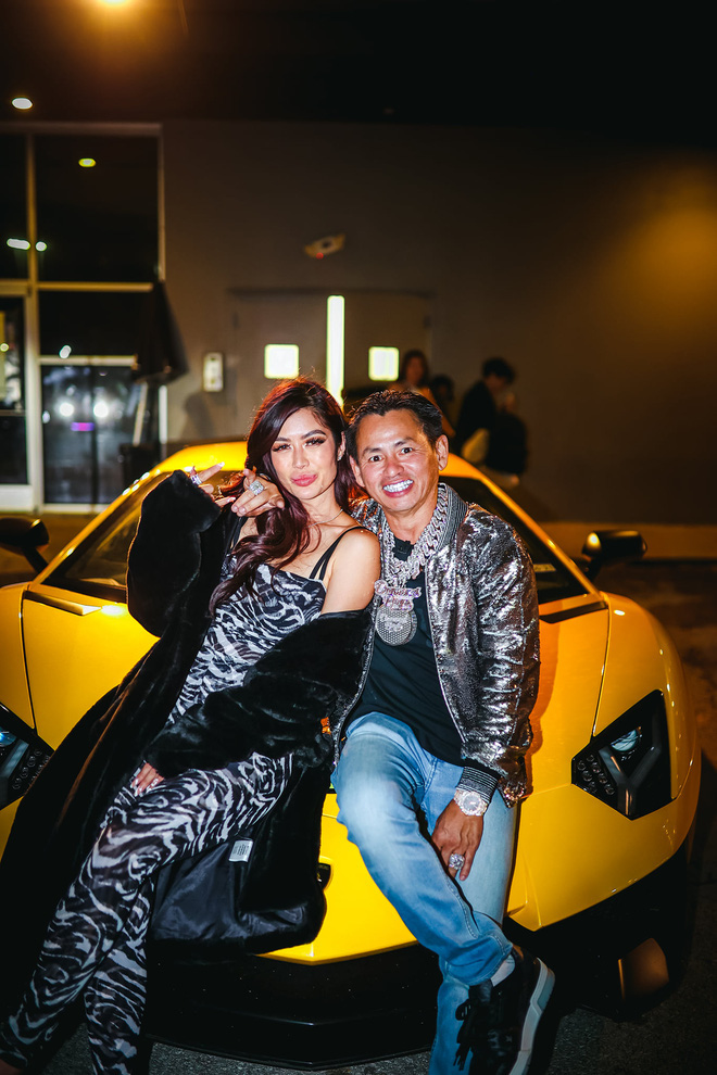 Bên ngoài, cơ ngơi có đủ các tiện nghi như bể bơi, khu để xe với những cái tên khiến dân tình trầm trồ như Rolls Royce Ghost, Lamborghini, Bentley. Nổi bật nhất vẫn là chiếc Lamborghini vàng V12 chỉ có 600 chiếc giới hạn trên toàn thế giới, giá bán ở Mỹ là hơn 400k đô (hơn 9 tỷ).
