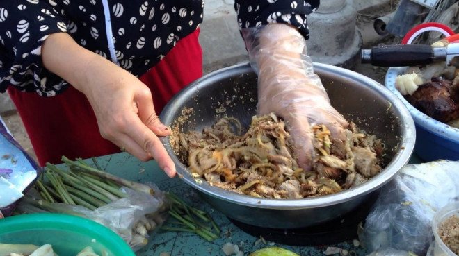 Gắp thịt ra để nguội rồi cắt lát mỏng, bỏ vào âu.