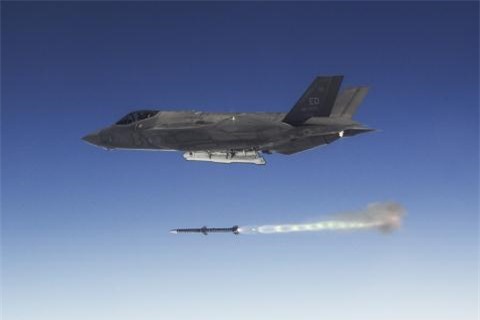 Tiêm kích tàng hình F-35 phóng tên lửa đối không AIM-120.