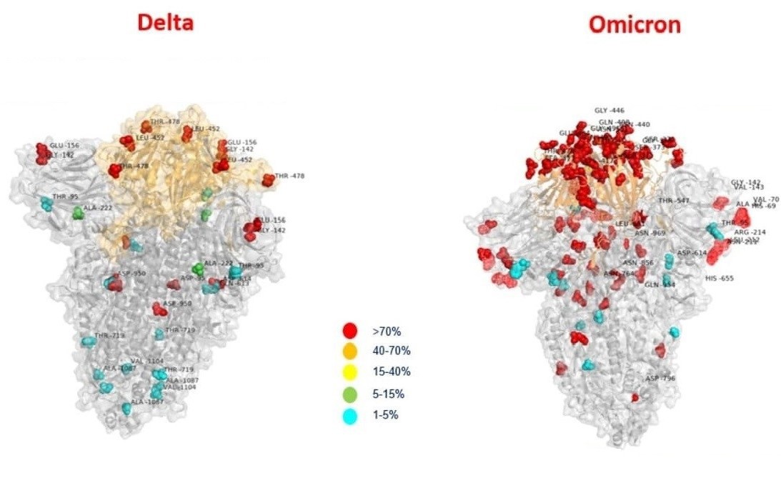 Giống như Delta, Omicron cũng có đột biến tên D614G giúp virus bám vào các tế bào mà nó lây nhiễm tốt hơn.