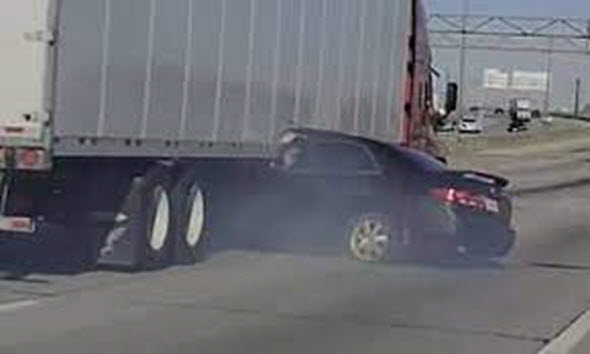 Trong đoạn clip được một người lái xe máy trên Xa lộ liên tiểu bang 294, Chicago, Mỹ ghi lại, có thể thấy đám bụi mịt mù bốc lên từ bên dưới chiếc xe tải, kéo theo một chiếc Honda Accord màu đen. Vụ việc xảy ra khoảng 11h40 sáng 30/11.