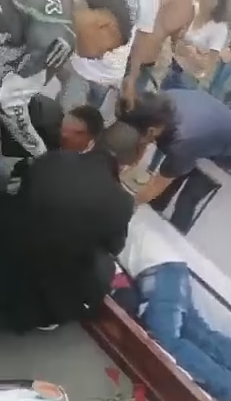 Trong video, có thể thấy nhóm bạn của Cedeno đổ rượu lên quan tài trước khi nhấc thi thể anh ra, nâng lên chiếc xe máy đang chờ sẵn. Có đến 7 người đàn ông đứng vây quanh xe.