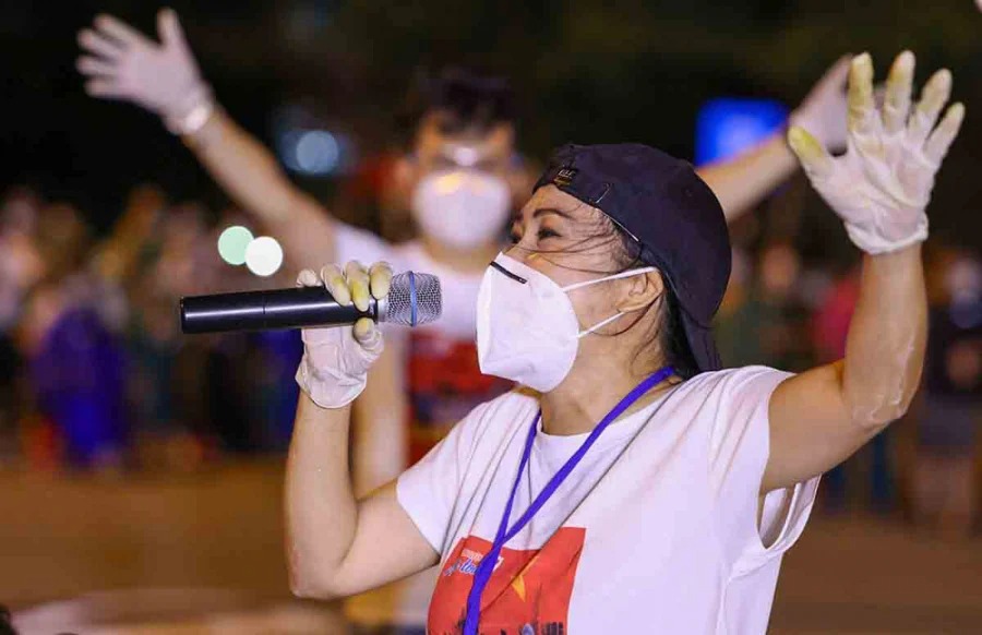 Sau đó, tôi mới bắt đầu thực hiện hành trình động viên tinh thần cho các chiến sĩ tuyến đầu bằng cách đem theo một chiếc loa kẹo kéo để hát và tặng họ những món quà như khẩu trang, đồ bảo hộ, trứng, rau củ… Tất cả quà được gửi từ các mạnh thường quân.