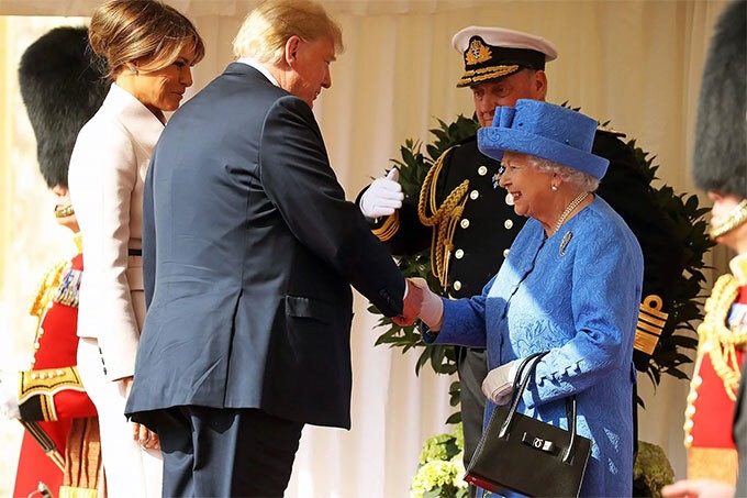 Cựu Tổng thống Donald Trump đã năm lần phá vỡ nguyên tắc hoàng gia. Trong chuyến thăm đầu tiên đến Vương quốc Anh năm 2018, ông Trump được cho là đã đến lâu đài Windsor muộn giờ. Ngay sau đó, tổng thống thứ 45 của Mỹ lại đi tới bắt tay ngay với Nữ hoàng. Sau khi phá vỡ hai quy tắc chỉ trong vài phút, ông Trump tiếp tục bước đi trước Nữ hoàng - vi phạm luôn một quy tắc nữa.