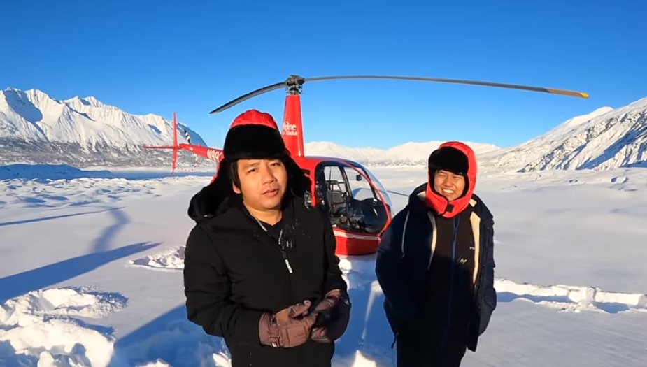 Anh cùng người bạn thân Vương Phạm đã thuê trực thăng cá nhân để thăm quan băng vĩnh cửu.