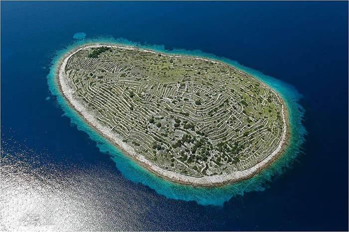 Nằm ngoài khơi bờ biển Croatia, Baljenac là một hòn đảo nhỏ được bao phủ bởi hàng loạt bức tường đá khiến nó giống như một dấu vân tay khổng lồ khi nhìn từ trên cao.
