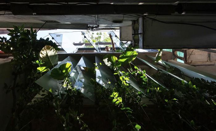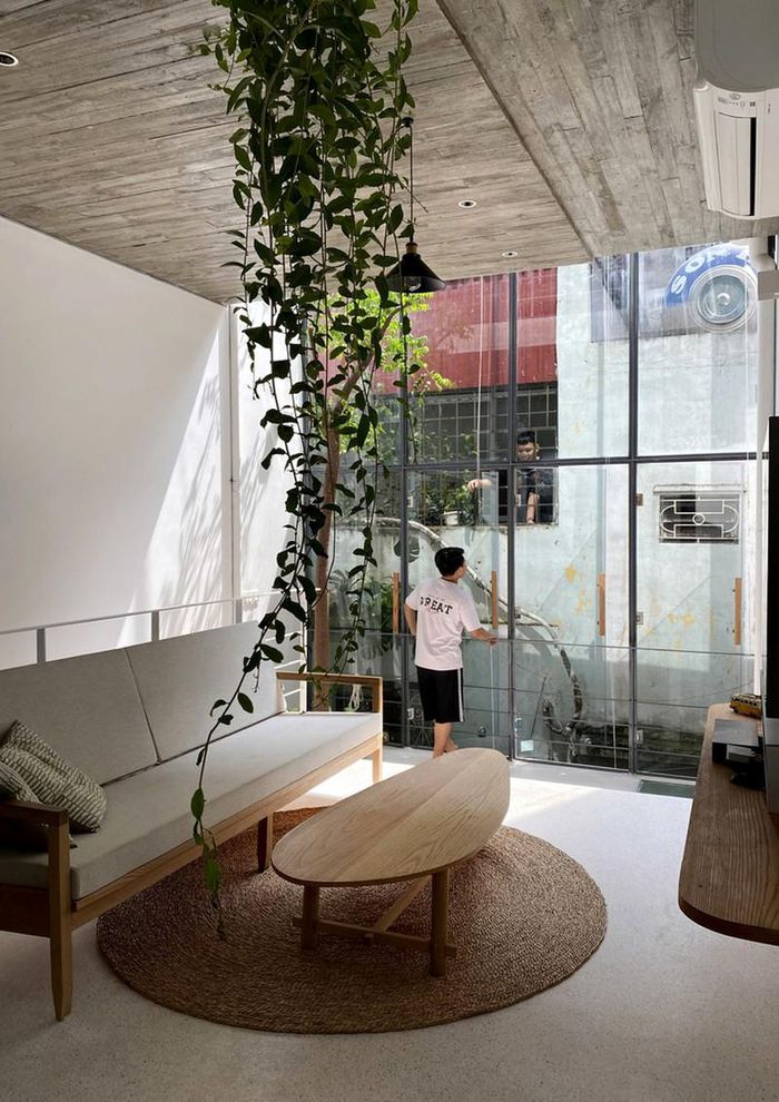 Không gian sống mở cùng với mặt tiền bằng kính kết hợp với hệ thống rèm tre truyền thống nhằm tạo sự riêng tư và gắn kết giữa các thành viên trong gia đình cũng như với hàng xóm.
