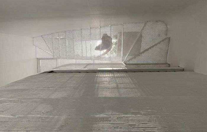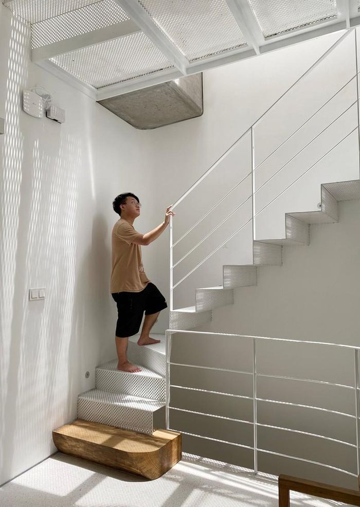 Cầu thang được thiết kế lạ bằng những lỗ đục nhỏ.