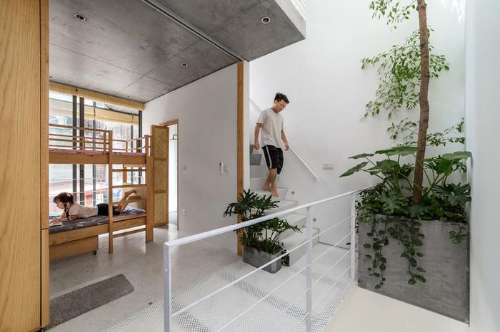 Đồng thời, trong ngôi nhà được trồng cây xanh và không gian các tầng liên thông với nhau để thành viên trong gia đình có thể giao tiếp với nhau.