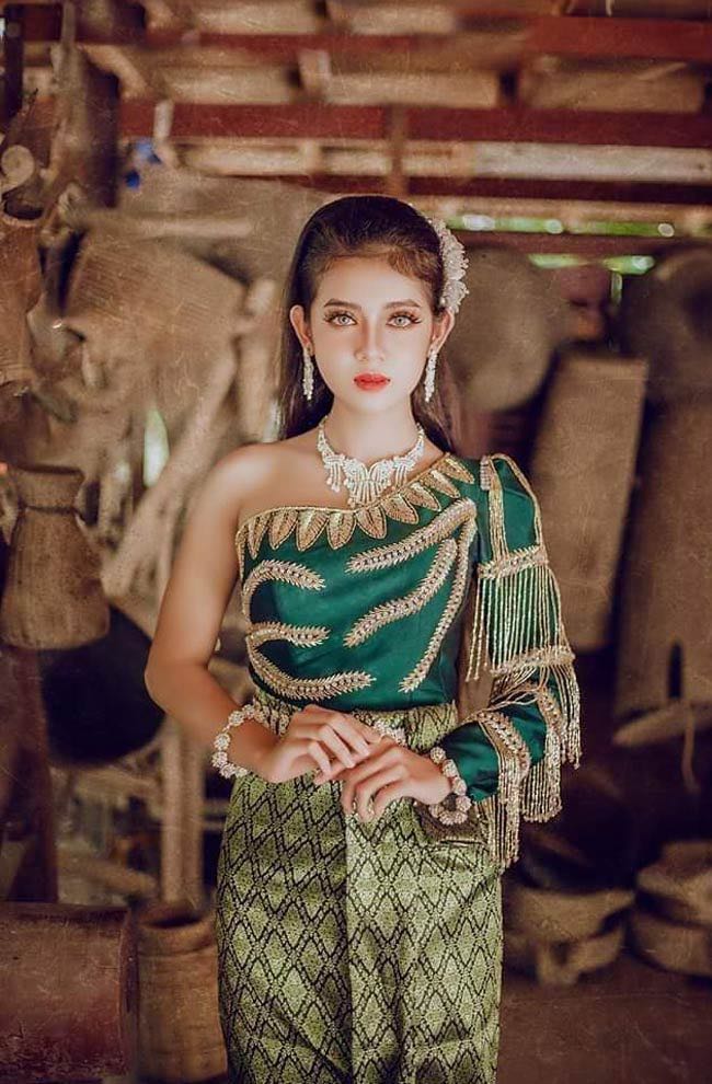 Sơn Thị Thu Hà khoe vẻ đẹp lai ấn tượng trong trang phục dân tộc Khmer.