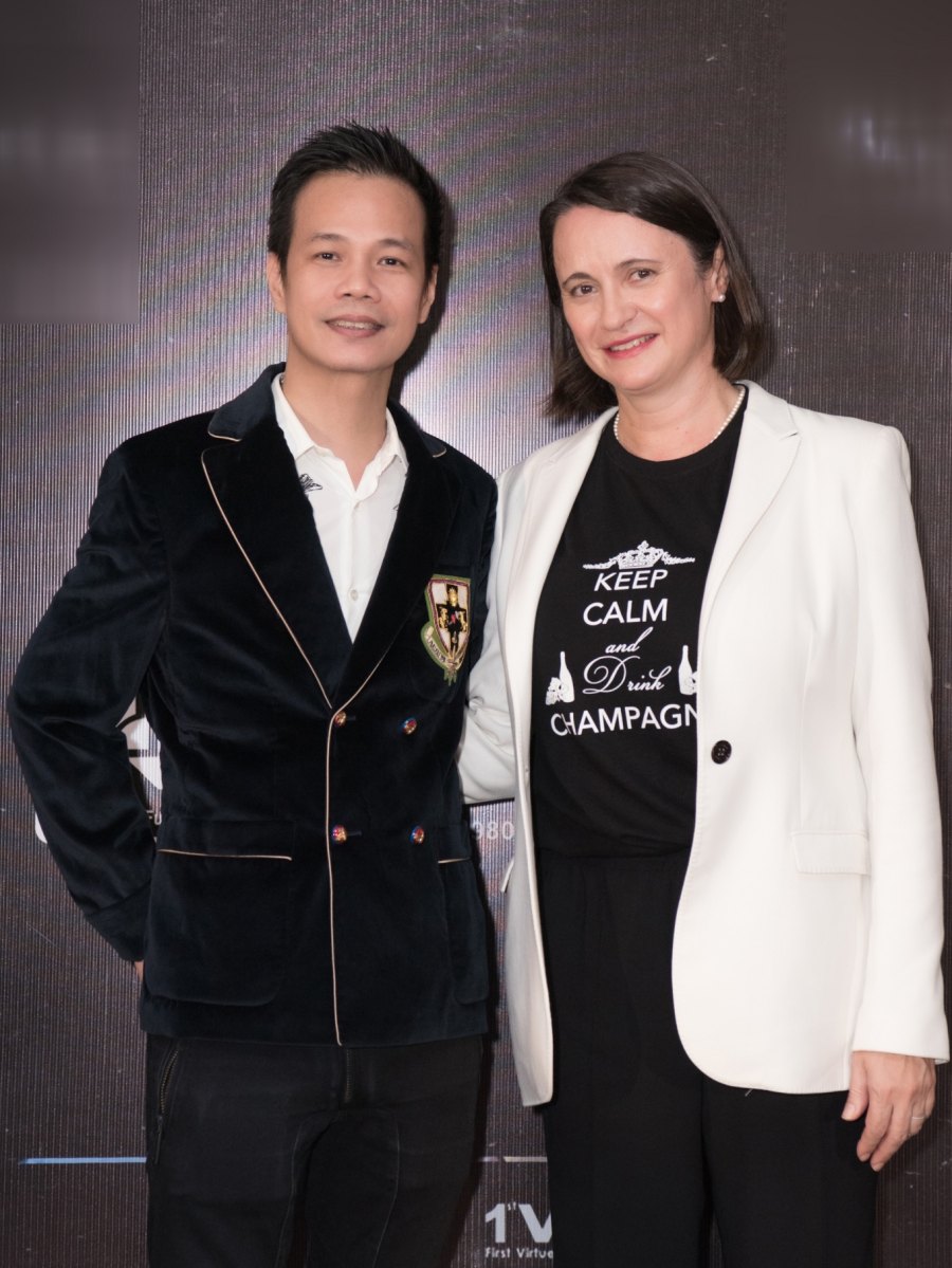 Bà Emmanuelle Pavillon Grosser chụp hình kỷ niệm bên NTK Hoàng Hải.