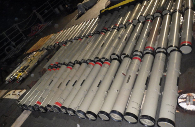 Hai lô vũ khí bị tịch thu gồm có 8 tên lửa đất đối không, 171 tên lửa chống tăng và tên lửa tầm nhiệt cùng với linh kiện rời của tên lửa chống hạm, drone… Bộ Tư pháp Mỹ cáo buộc số vũ khí này được Iran chuyển cho phiến quân Houthi tại Yemen.