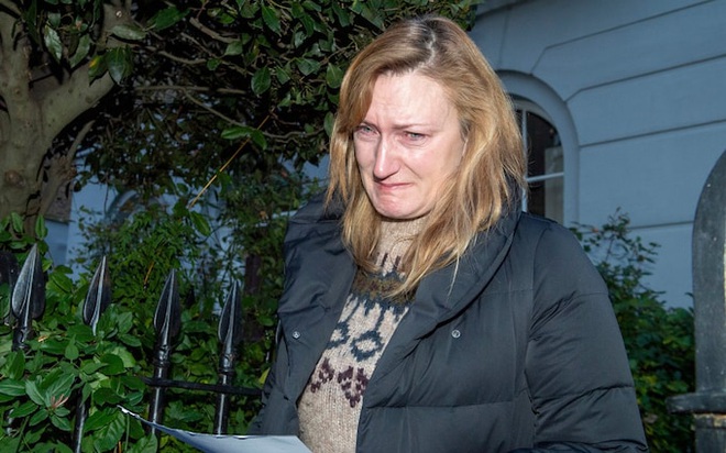 Bà Allegra Stratton rơi nước mắt khi tuyên bố từ chức vai tṛ cố vấn cho Thủ tướng Johnson (Ảnh: Telegraph).