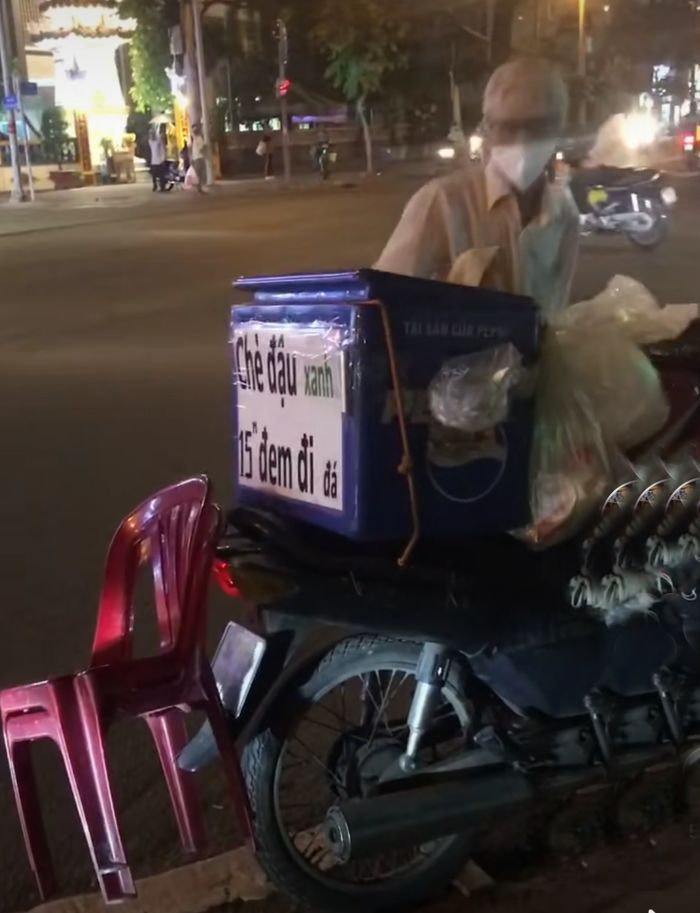 Dù tuổi đã cao nhưng cụ rất chịu khó, được biết mọi công đoạn trong khâu làm chè đều do cụ tự tay thực hiện, không chỉ ngon mà còn đảm bảo vệ sinh. Cứ nấu xong là hành trình rong ruổi lại bắt đầu. Chiếc xe máy cà tàng mỗi ngày phải chở bao nhiêu là thứ từ thùng đá, ghế ngồi cho tới những vật dụng cần thiết khác. Giá bán ra cho mỗi ly chè chỉ có 15K nhưng topping thì nhiều vô kể. Phải bán hết 9 ly, cụ mới lời được 20.000-30.000 đồng.