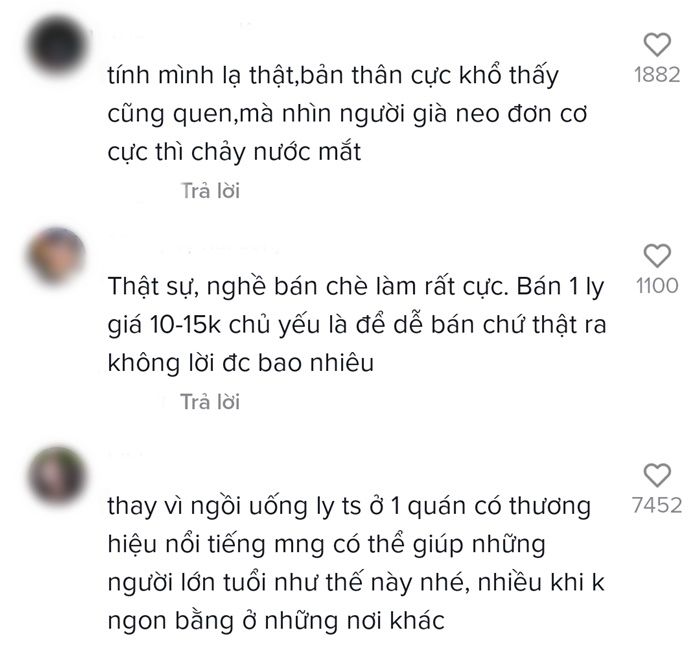 – “Thay vì ngồi uống ly trà sữa ở 1 quán có thương hiệu nổi tiếng thì mua giúp những người lớn tuổi như này đi mọi người ơi”.