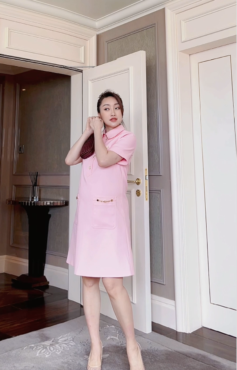 Được biết đến là mỹ nhân sở hữu gu thời trang sang chảnh, trang phục ra phố của cô không thể thiếu những món hàng hiệu. Bên cạnh sự sành điệu từ trang phục, Lý Thùy Chang hút mắt nhờ thần thái rạng rỡ, nụ cười tươi tắn thường trực. Cô truyền cảm hứng về vẻ đẹp khỏe khoắn, tràn đầy sức sống của phụ nữ mang thai, phá tan định kiến về những "bà bầu mệt mỏi".
