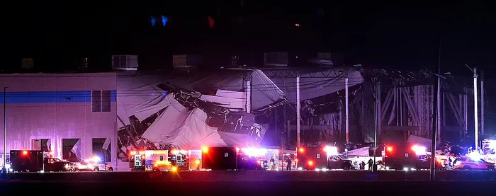 Nhà kho Amazon ở Edwardsville, Illinois, bị xé toạc mái sau khi cơn lốc xoáy quét qua khu vực.