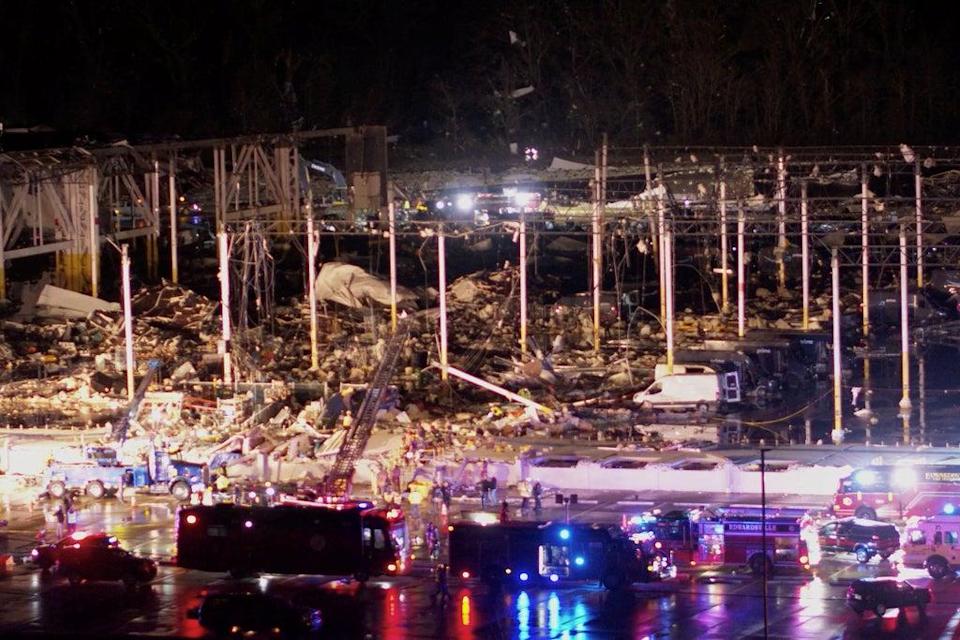 Tuy nhiên ngay sau đó, một nhà máy sản xuất nến ở tiểu bang này đã bị kéo sập, trong khi có ít nhất 110 người đang làm việc ở thời điểm tai nạn. Thống đốc Andy Beshear cho rằng "sẽ mất ít nhất vài chục nạn nhân trong số những người không may này."