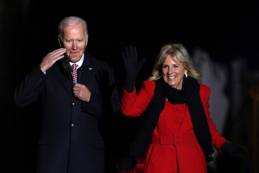 Tổng thống Mỹ Joe Biden và Đệ nhất phu nhân Jill tại lễ thắp sáng Cây Giáng sinh Quốc gia ở Nhà Trắng hôm 2/12. Ảnh: AFP.