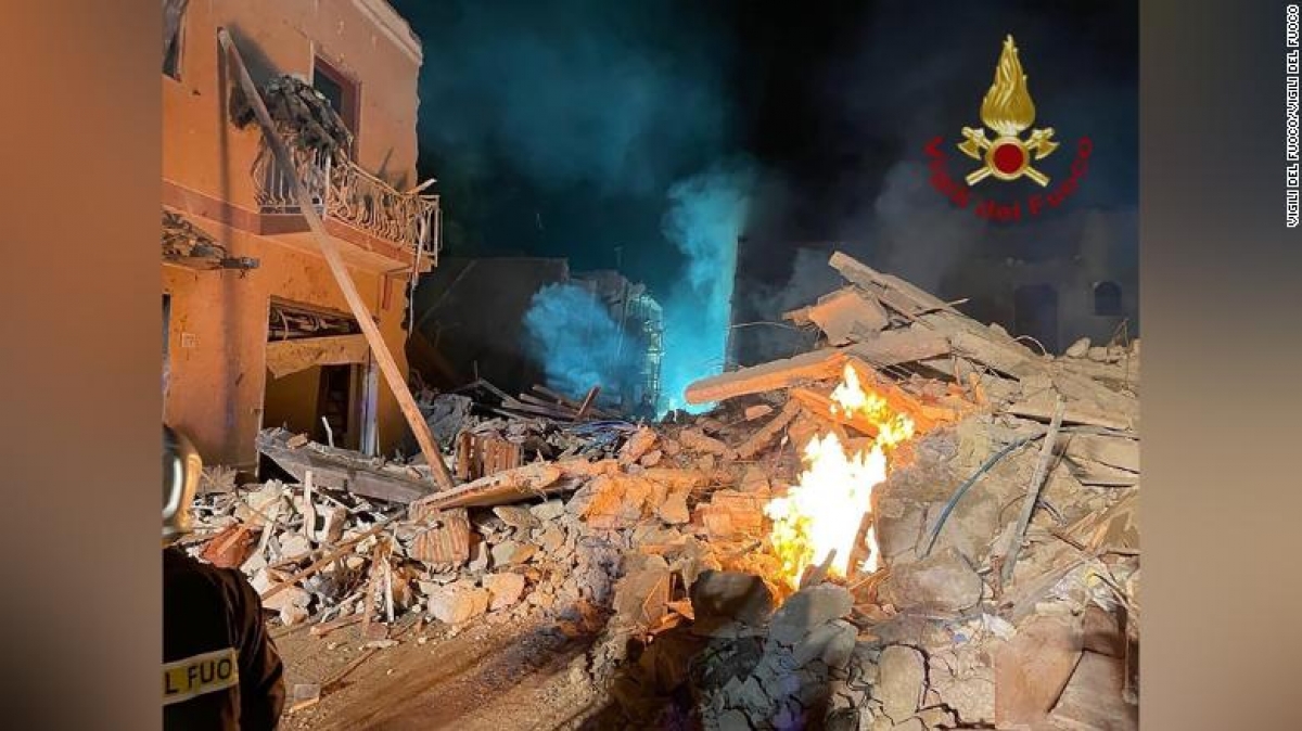 Hiện trường vụ sập tòa nhà do vụ nổ đường ống khí đốt ở thị trấn Ravanusa, Sicily, Italy. Ảnh: CNN