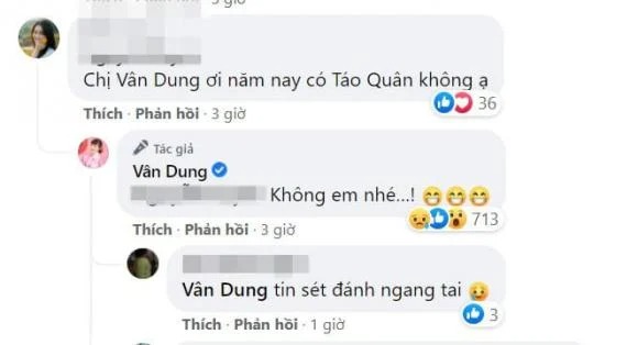 Mới đây, khi nghệ sĩ Vân Dung đăng bức ảnh mới trên trang cá nhân, hàng loạt cư dân mạng đã bình luận thắc mắc liệu Tết Nhâm Dầm 2022 có Táo Quân hay không? Cụ thể khi một người hỏi: "Chị Vân Dung ơi năm nay có Táo Quân không ạ?", nghệ sĩ Vân Dung liền trả lời: "Không em nhé". Điều này khiến nhiều người cảm thấy buồn và tiếc nuối.