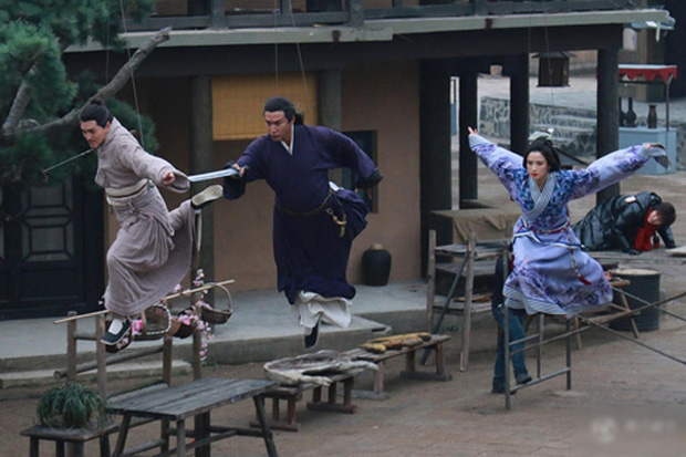 Các bộ phim kiếm hiệp thường có nhiều cảnh quay khinh công vô cùng chuyên nghiệp và đầy nghệ thuật. Nhưng sự thật là diễn viên không biết vận khinh công để bay. Vì vậy, ở những phân cảnh bay trong các bộ phim kiếm hiệp cổ trang, đoàn làm phim cần sự hỗ trợ của các đạo cụ như dây cáp hay thang.