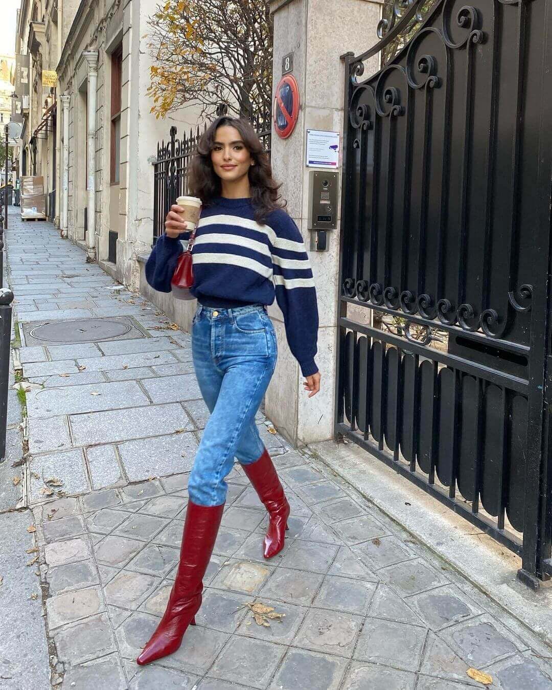 Có lẽ bạn chưa sẵn sàng cho màu đỏ từ đầu đến chân. Thay vào đó, hãy phối màu vào trang phục của bạn. Những đôi giày sáng màu có thể nâng tầm kiểu dáng cơ bản, như hình ảnh Taylor Swift dưới đây. Hoặc, giảm tông màu cho một món đồ như áo khoác, áo len hoặc váy, với các sắc thái trung tính hơn. Những màu tốt nhất cho công việc này là trắng, kem, rám nắng và đen. Nếu bạn đang muốn có sự lãng mạn, hãy thử kết hợp với màu hồng.