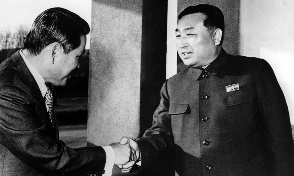 Kim Yong-ju (phải) tại Bình Nhưỡng năm 1972. Ảnh: KNS.
