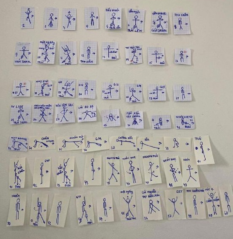 Vậy nhưng một nữ sinh mới đây đã nghĩ ra cách ghi điểm môn Thể dục có 1-0-2 khiến ai cũng phải chào thua. Cụ thể, cô bạn đã vẽ các động tác thể dục lên giấy. Mỗi động tác sẽ là một miếng giấy và dán lên tường trước màn hình máy tính. Khi tập chỉ cần nhìn vào các hình vẽ và tập theo.
