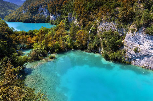 Vườn quốc gia Plitvice Lakes, Croatia: Đẹp đến ngỡ ngàng, những hồ nước lấp lánh với đủ các sắc thái khác nhau của màu xanh như xanh lá cây, xanh lam và xanh ngọc lam này sẽ khiến bạn say mê. Được nối với nhau bởi các thác nước nhiều tầng, và được bao quanh bởi rừng cây rậm rạp, đây thực sự là một cảnh tượng đáng để chiêm ngưỡng.