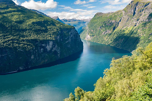 Geirangerfjord, Na Uy: Khi nói đến vẻ đẹp tự nhiên, Na Uy đã được thiên nhiên ưu đãi nhiều cảnh quan ngoạn mục bao gồm vô số những vịnh hẹp hấp dẫn. Với làn nước xanh thẳm, những thác nước đổ ầm ầm và sườn núi xanh ngắt, Geirangerfjord đã được UNESCO công nhận là địa điểm nổi tiếng nhất trong số đó.