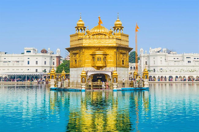 Đền vàng, Amritsar, Ấn Độ: Đền Vàng là một trong những địa điểm linh thiêng nhất của Ấn Độ và là một trong những nơi thờ phụng đẹp nhất thế giới. Ngôi đền mạ vàng có từ thế kỷ 16 được xây nổi trên hồ Amrit Sarovar lung linh huyền ảo trong làn nước linh thiêng. Hàng nghìn người hành hương đến nơi này mỗi năm.