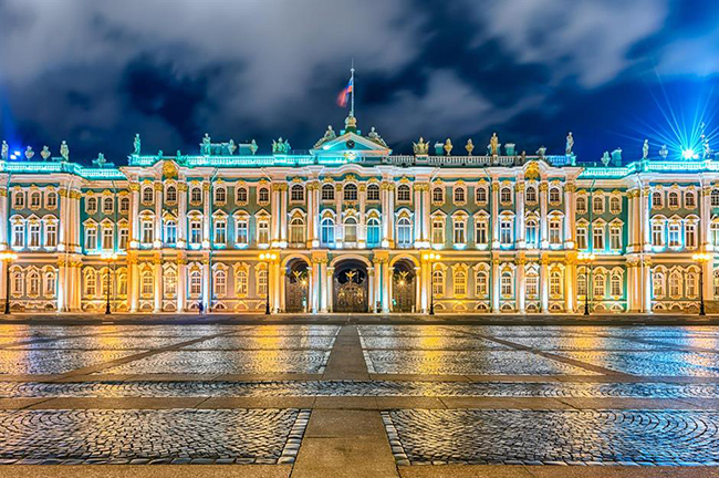 Cung điện mùa đông, St Petersburg, Nga: Đây là một kiệt tác kiến trúc Baroque của Nga. Nơi ở xa hoa của các Sa hoàng này nằm bên bờ sông Neva, với một số cung điện được xây dựng vào thế kỷ 18. Tòa nhà lấp lánh này được xây dựng bởi kiến trúc sư Baroque Bartolomeo Francesco Rastrelli từ năm 1754-62.