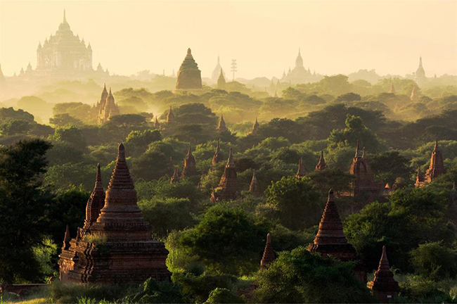Bagan, Myanmar: Hãy phóng tầm mắt qua thành phố cổ Bagan và bạn sẽ bị mê hoặc bởi vẻ đẹp và lịch sử của một thế giới khác rất cổ xưa. Nơi đây có một số lượng đáng kinh ngạc các ngôi đền, cung điện, chùa và tu viện nằm san sát nhau dọc theo sông Irrawaddy.