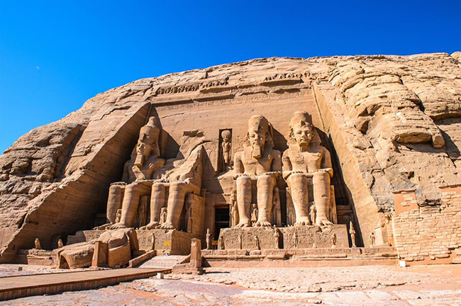 Đền thờ lớn ở Abu Simbel, Ai Cập: Được đẽo gọt cẩn thận trên sườn núi, ngôi đền hùng vĩ này được hoàn thành vào năm 1265 trước Công nguyên để kỷ niệm chiến thắng của Ramesses II và nữ hoàng Nefertari trong Trận chiến Kadesh.