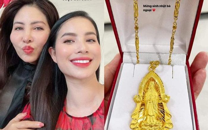 Mẹ đẻ Hoa hậu Phạm Hương được con gái tặng quà sinh nhật dây chuyền vàng giá trị lớn.