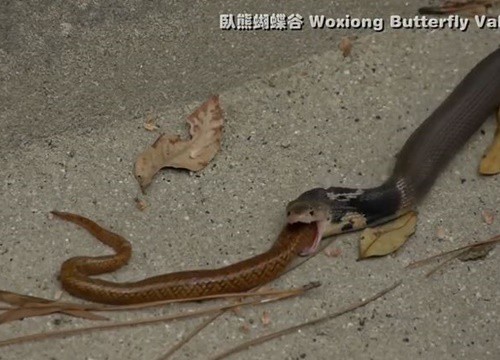 Con mồi đó chính là một con rắn Kukri vàng (tên khoa học là Oligodon cinereus), một loài rắn không có nọc độc. Trong khi đó, hổ mang Trung Quốc là một loài rắn có nọc độc cực mạnh với chất độc thần kinh và chất độc tim.