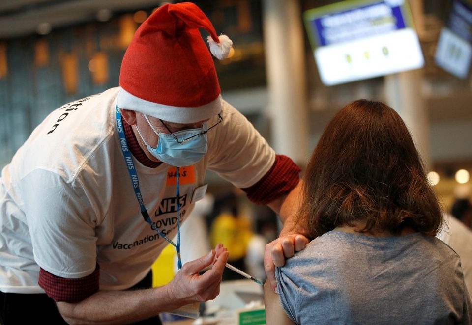 Nhân viên y tế tiêm mũi vaccine tăng cường cho người dân tại điểm tiêm chủng ở London, Anh hôm 19/12. Ảnh: Reuters.