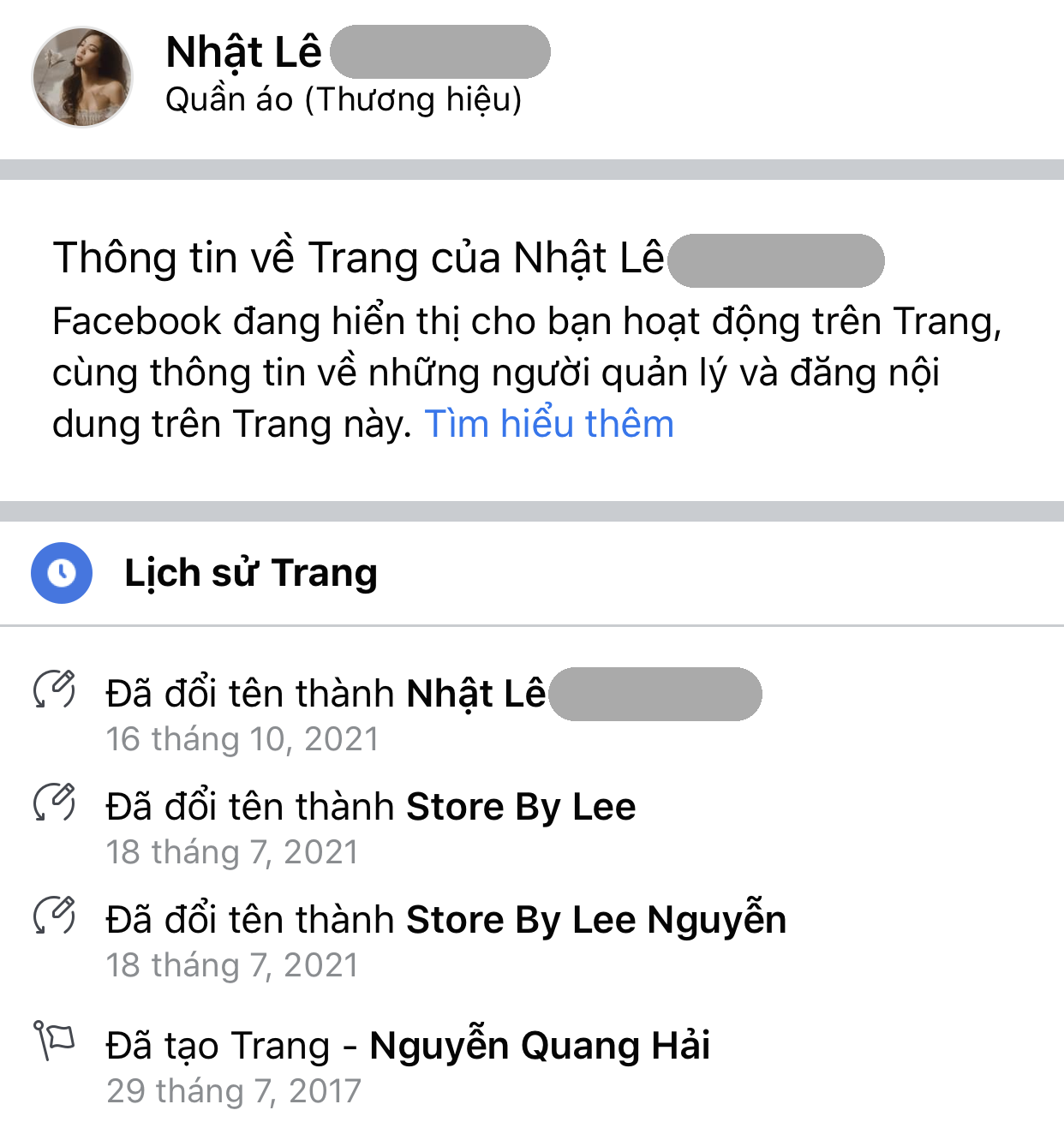 Tuy nhiên khi tìm đến page của Nhật Lê, các "thám tử" mạng còn tìm thấy một chi tiết thú vị hơn. Hoá ra trước khi trở thành nơi để Nhật Lê kinh doanh, page này có tên là... Nguyễn Quang Hải vào năm 2017.