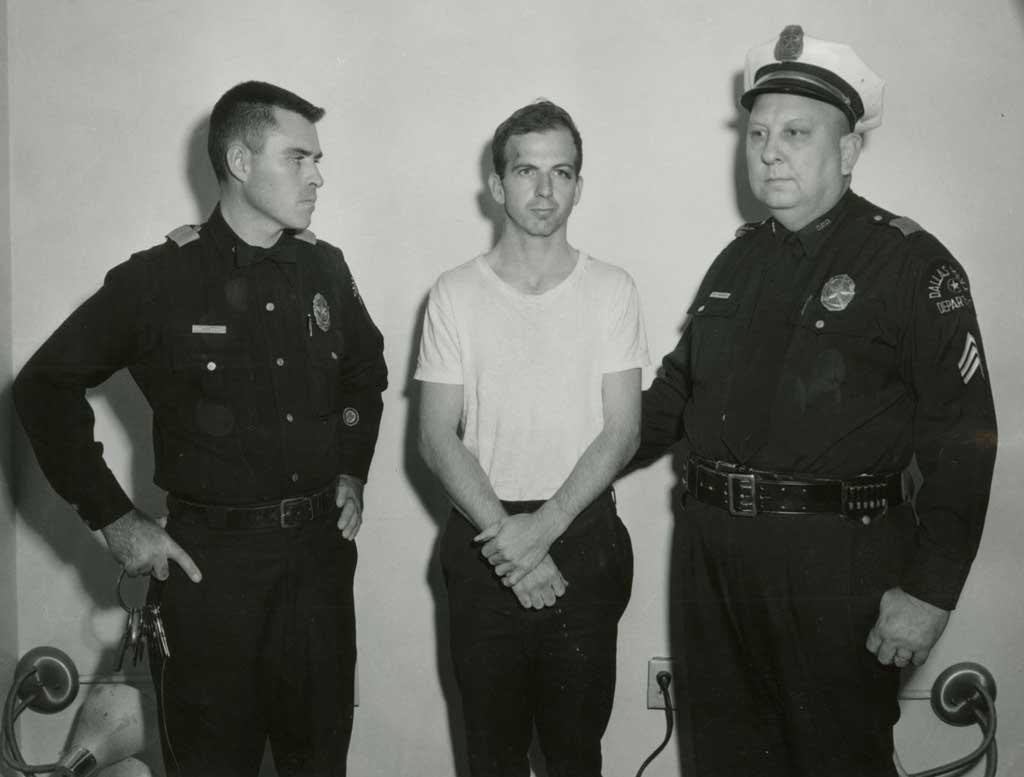 Hung thủ Lee Harvey Oswald (giữa) bị bắt sau vụ ám sát