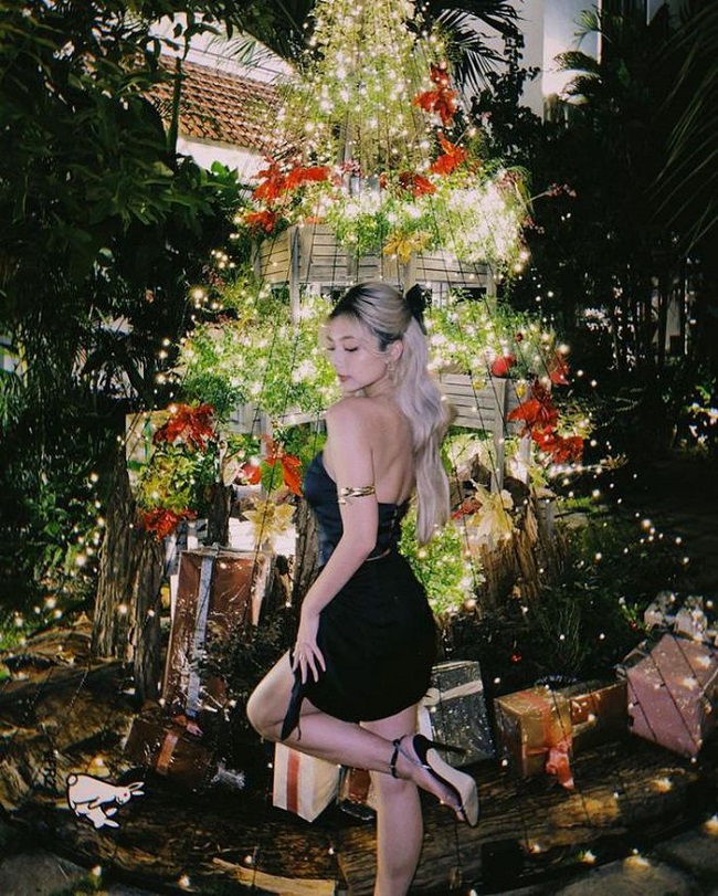 Trong lúc bạn bè bận rộn chuyện chồng con, Ngọc Thảo lại chọn độc thân vui tính và không quên khoe dáng bên cây thông Noel.
