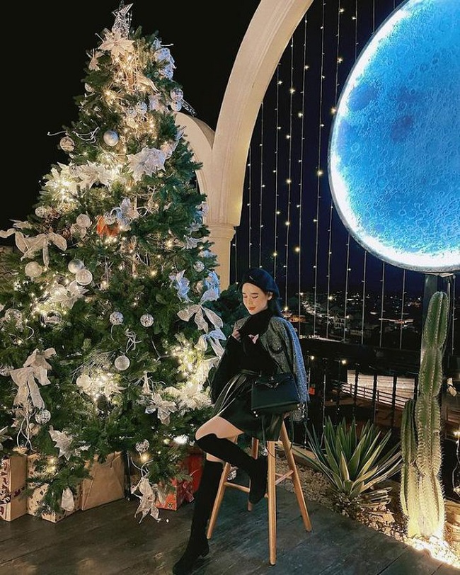 Không kém đàn chị, Thúy Ngân khoe bức ảnh bên cây thông Noel. Nữ diễn viên chọn mốt giấu quần để lộ đôi chân dài miên man.