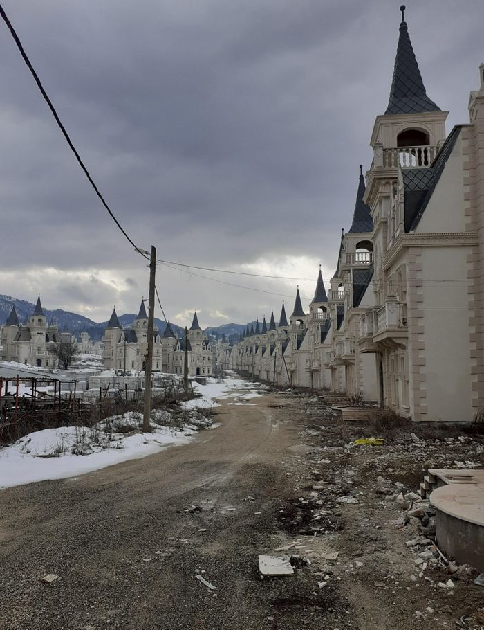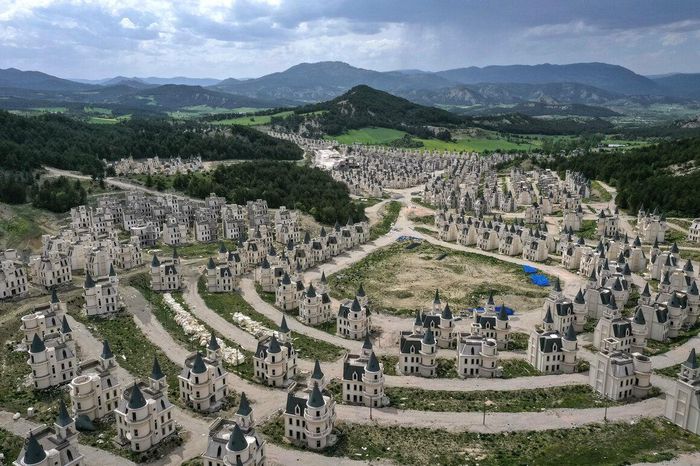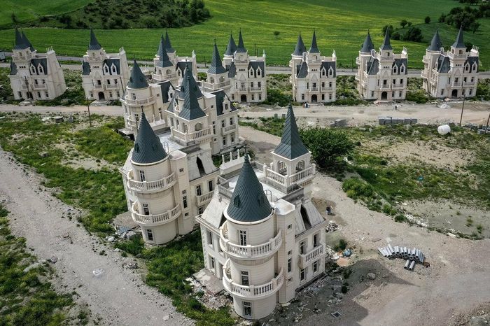 Nằm giữa Istanbul và Ankara, Thổ Nhĩ Kỳ là một thung lũng tuyệt đẹp với những rừng thông và suối nước nóng, lại có thứ giống như trong một bộ phim Disney: Nhiều hàng dài biệt thự thiết kế kiểu lâu đài, giống hệt nhau. Ảnh: CGTV.