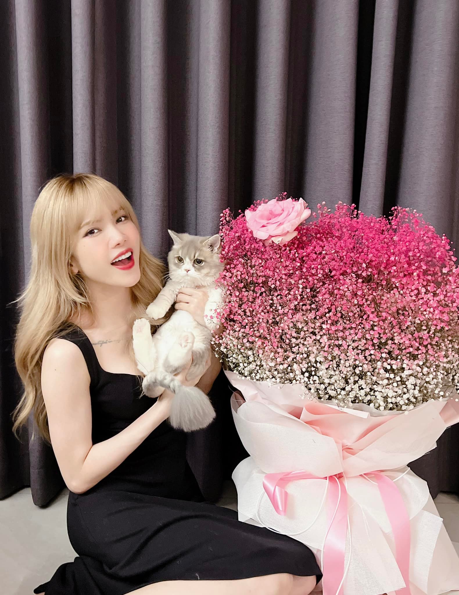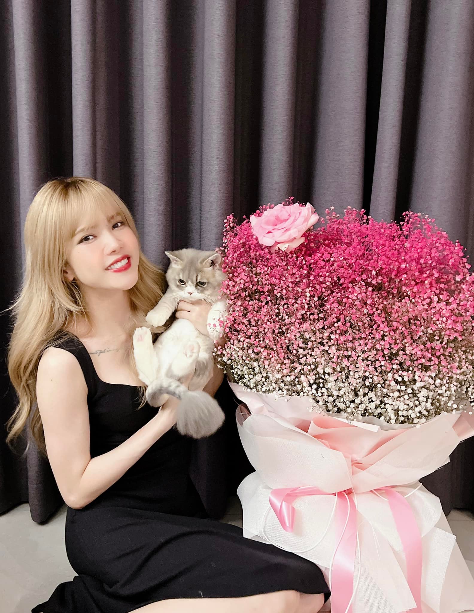 Thiều Bảo Trâm khoe sắc bên bó hoa được "ai đó" tặng vào lúc nửa đêm