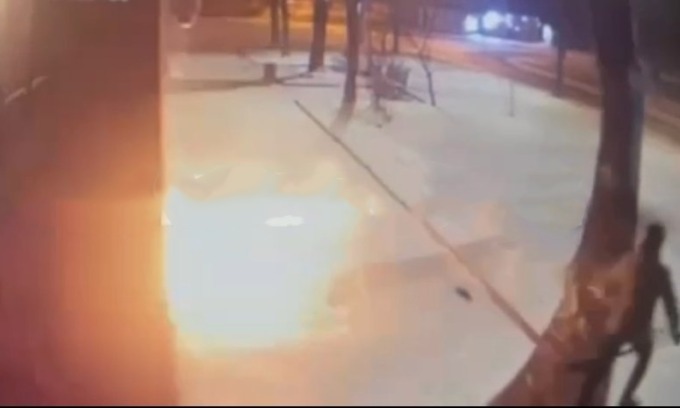 Hiện trường vụ ném bom xăng trước lãnh sự quán Nga ở Lviv, Ukraine, hôm 24/12. Ảnh: Telegram/Revoukraine.